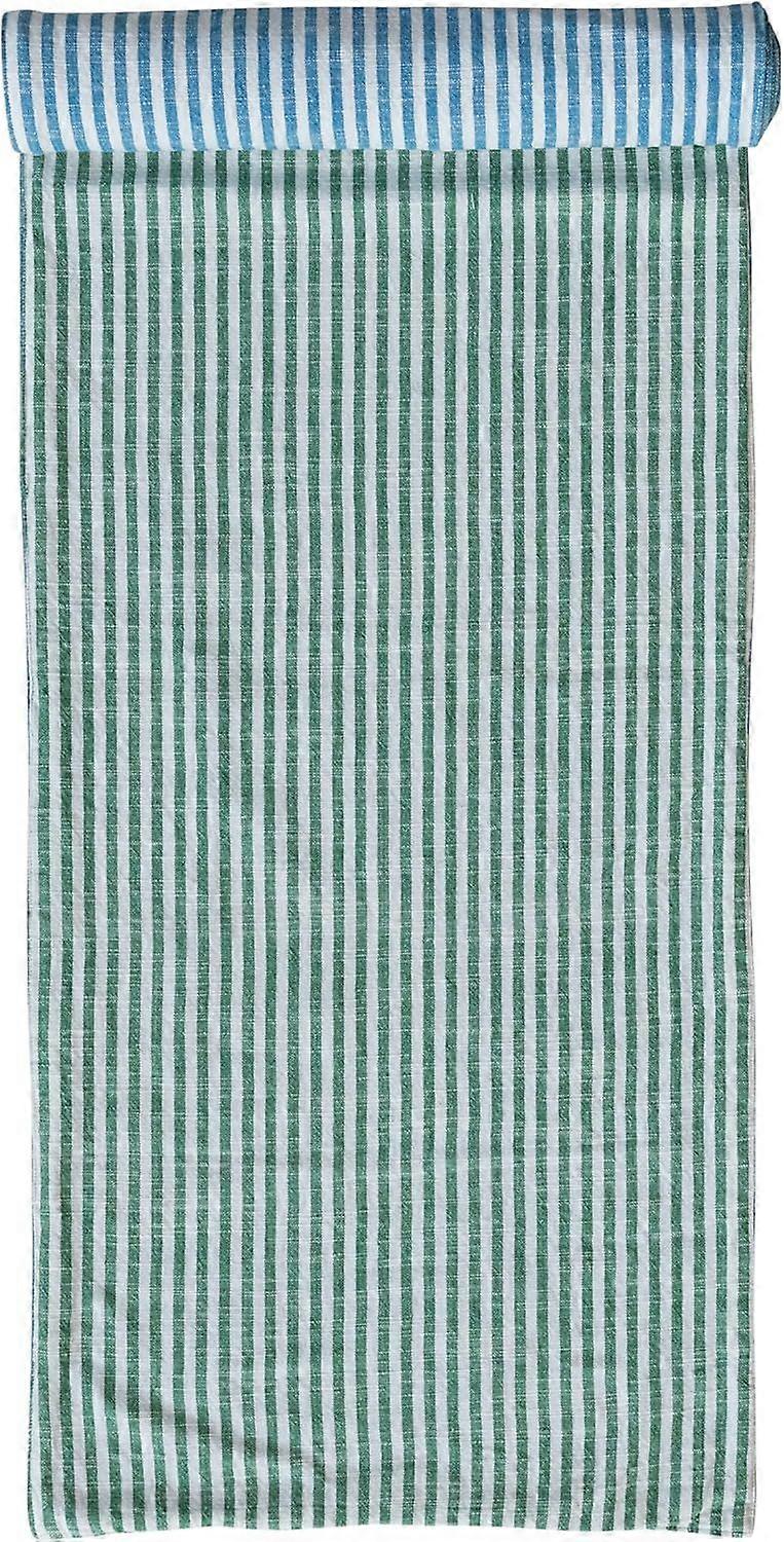 Woven Cotton Reversible Striped Table Runner, Blue, Green and Natural