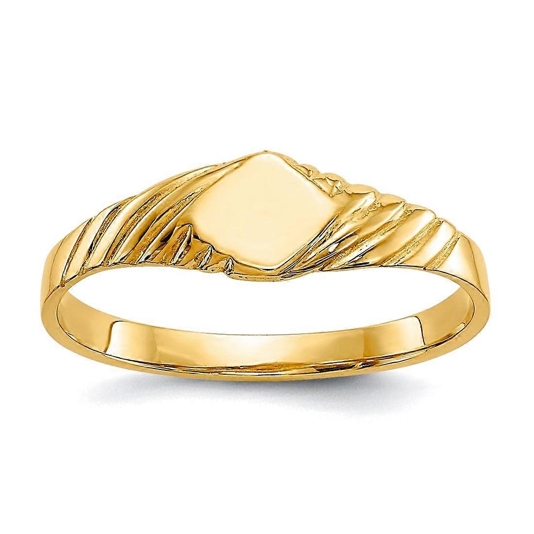 14k Yellow Gold Solid Polished Fancy Signet Ring Size 3-Ring - .9 Grams