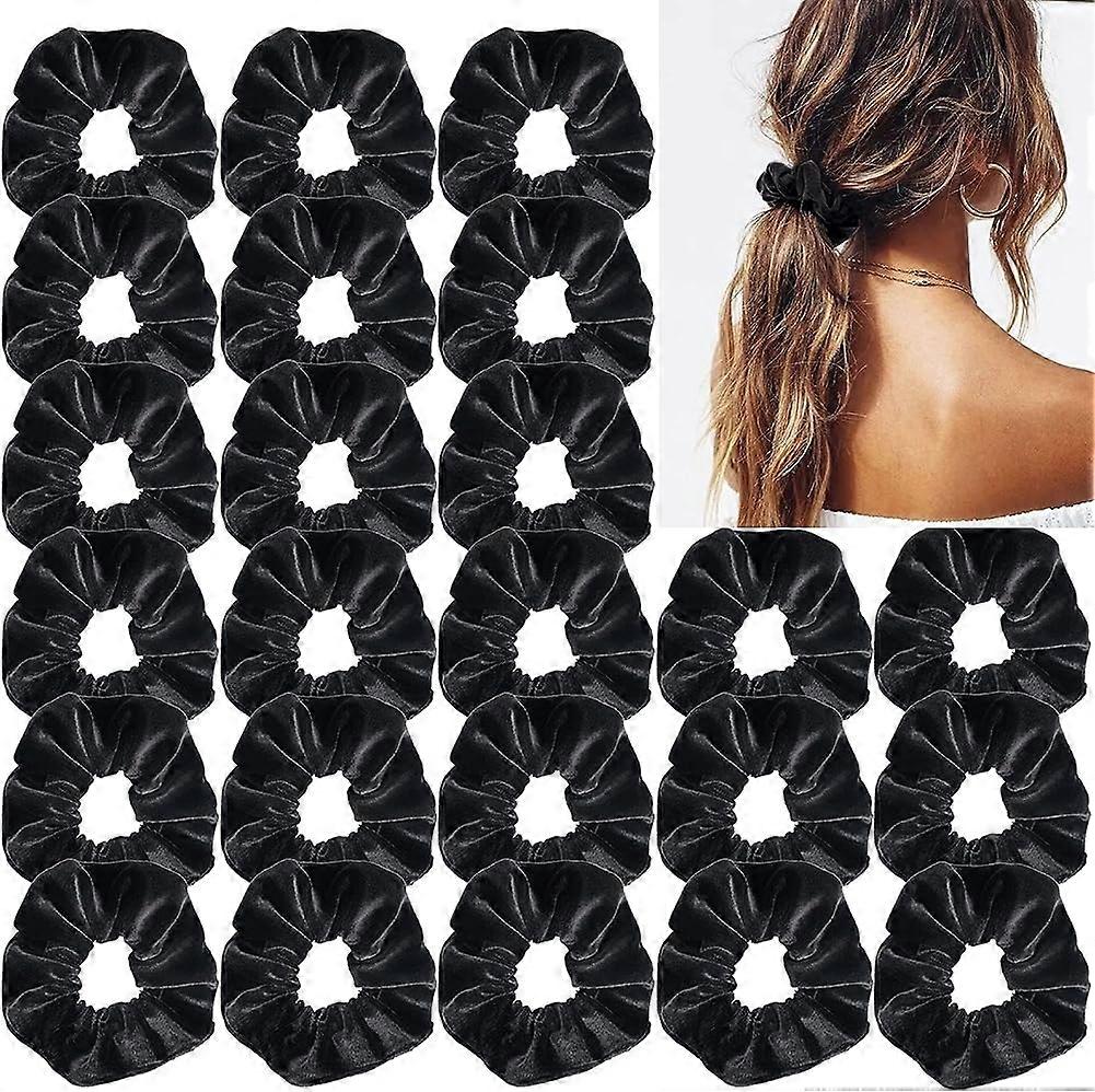 Black Velvet Hair Scrunchies - Elastic Hair Ties Ponytail Holders Large
