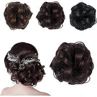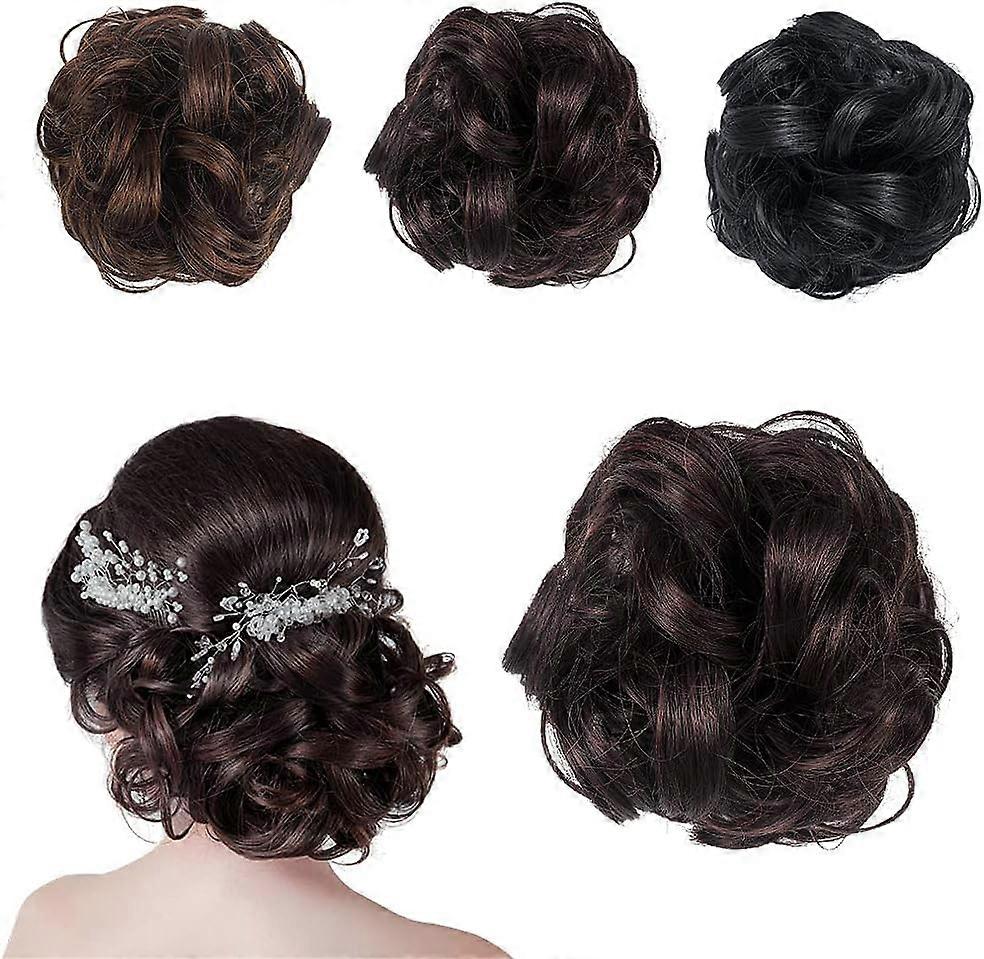 Hair Bun Messy Hair Scrunchies Updo Ponytail Hair Extensions Donut Chignons Wavy Curly Hair Pieces for Women Girls (Darkest Brown)
