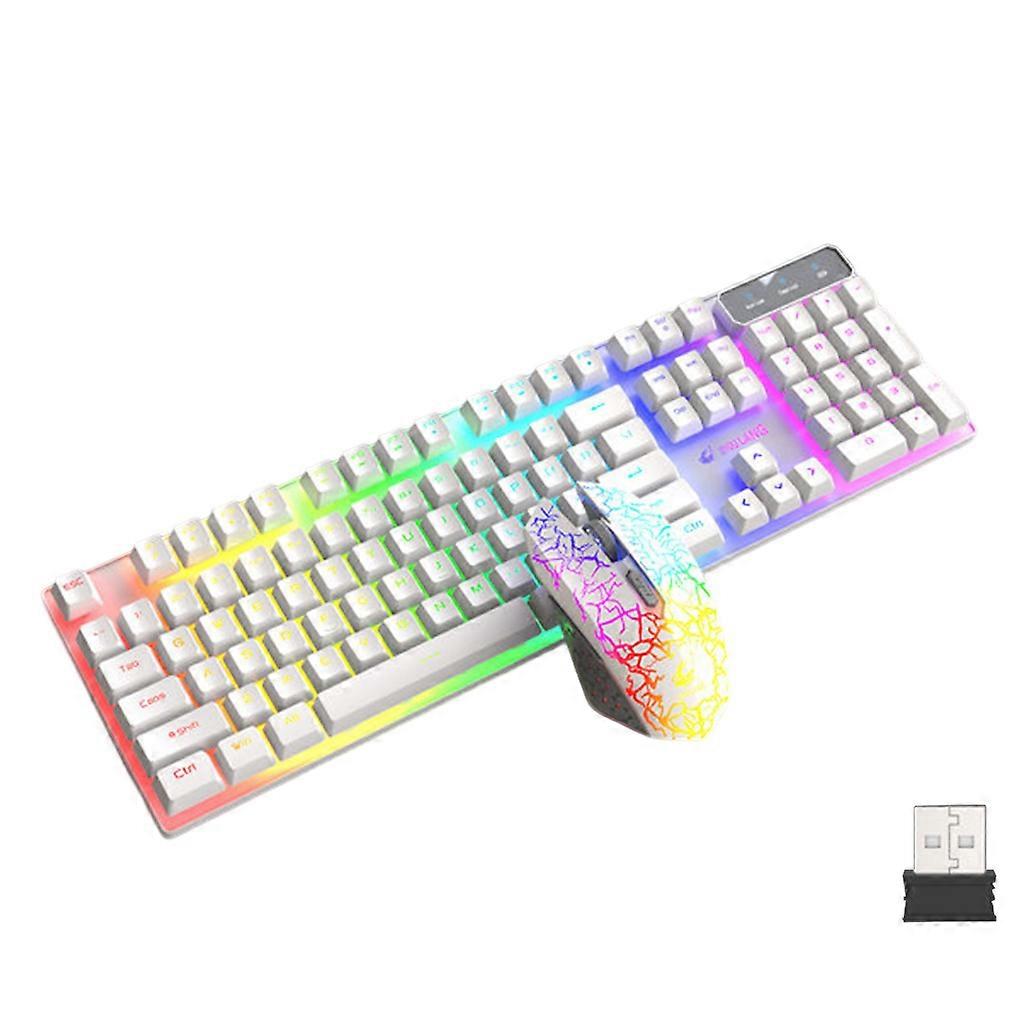 <span style="font-size:14px"><span style="font-family:Arial,Helvetica,sans-serif"><strong>Features:</strong> <strong>RGB light effect </strong> The mouse and keyboard have colorful and cool RGB lighting effects, and there are luminous characters on the floating keycaps, which are very suitable for game lovers. <strong>Life waterproof </strong> The front of the keyboard has a 5-level living waterproof design to effectively prevent liquid splashing. There is a drain hole at the bottom, which can drain water quickly. <strong>Ergonomic design </strong> The mouse has an for ergonomic design, and it feels comfortable in the hand, and you will not feel tired even if you use it for a long time. <strong>DPI adjustable </strong> The mouse has three levels of DPI (800-1600-2400) that can be adjusted, which is convenient to use and can meet your needs. <strong>Multi-button</strong> The keyboard has 104 buttons, 19 of which are conflict-free design, giving you a better gaming experience. The mouse has 6 buttons and is practical. <strong>Specifications:</strong> Type: keyboard mouse set Material: ABS Item color: black/white Interface: USB Number of keyboard keys: 104 Number of mouse keys: 6 Light effect: RGB DPI: 800-1600-2400 Length of mouse wire: 1.5m Mouse size: 7*13.5*4.5cm/2.75*5.31*1.77inch (L*W*H) Keyboard size: 13*45*3cm/ for 5.11*17.69*1.18inch (L*W*H) Weight:1200/42.33oz</span></span> &nbsp;
