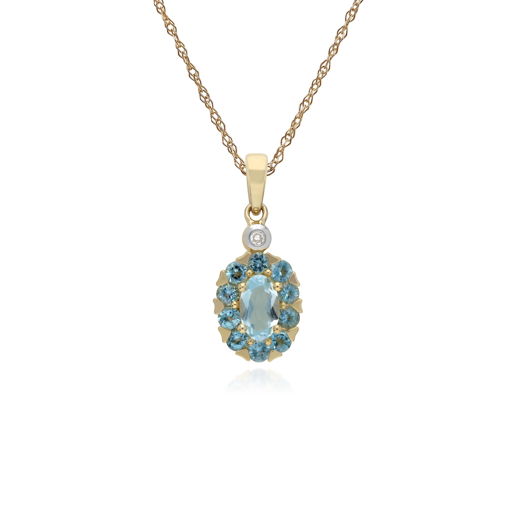Cluster Round Blue Topaz & Diamond Oval Pendant Necklace in 9ct Yellow Gold 135P1912059