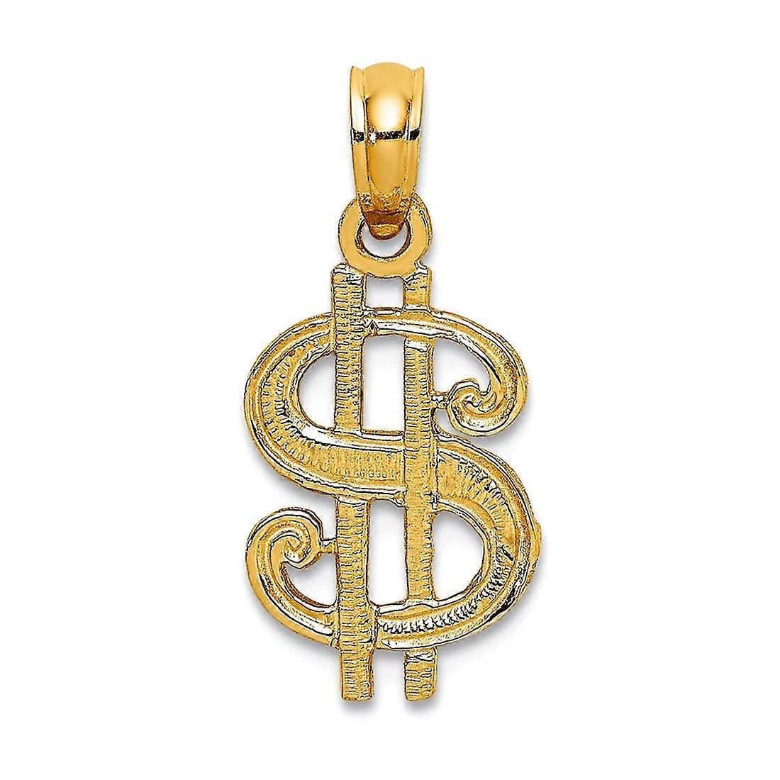 9.3mm 10k Solid Yellow Gold Dollar Sign Charm Pendant Necklace for Women - .7 Grams