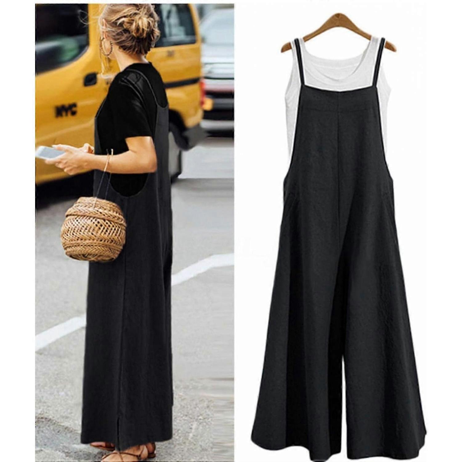Women's Casual Loose Long Bib Wide Leg Jumpsuit Loose Cotton Jumpsuit Overalls with Pockets PZZTYP2