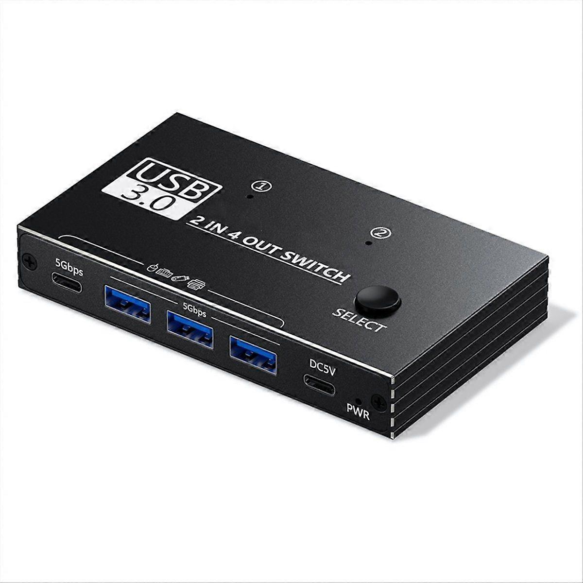 USB 3.0 Switch 5Gbps 2 Input 4 Output USB C Switch for Devices Share Printer Scanner Mouse Keyboard