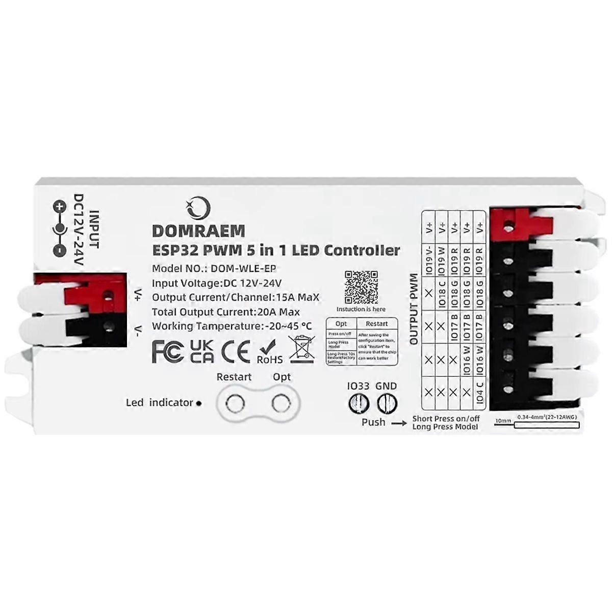 WLED Controller ESP32 PWM for Analog LED Strip for 2/3/4/5/6 Wires, White CCT RGB RGBWCCT for for