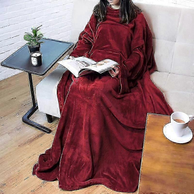Fleece Wearable Tv Blanket With Sleeves Front Pocket Robe Warn Soft Blanket Gift
