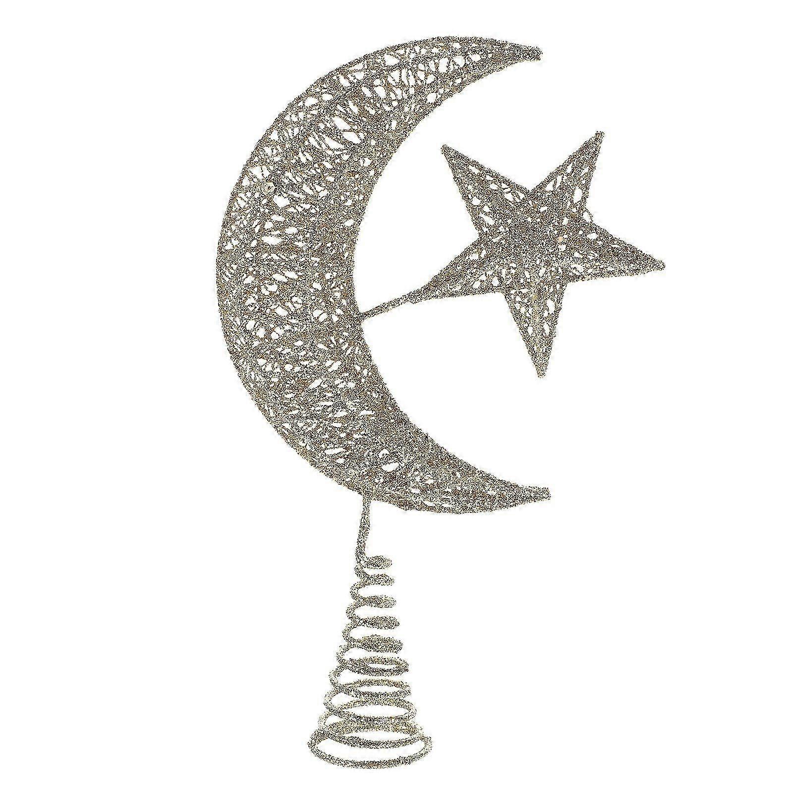 Christmas Tree Star and Moon Topper Xmas Party Decor Glitter Tree Ornament