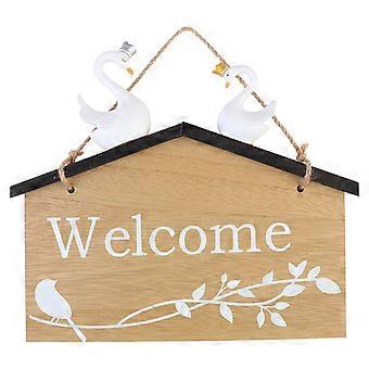 Signe de porte de bienvenue Panneau de décoration de maison en bois avec une paire de cygnes blancs