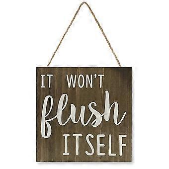 Funny Wooden Sign - It won't flush itself! 12x12 inch Farmhouse Decorative Plaque, Inspirational Quote Wall Art