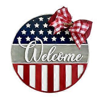 Yakbaofuo Door Hanging Decoration, Welcome Sign for July 4th Independence Day, Patriotic US Flag Summer Decor Compatible with Outdoor & Home Walls