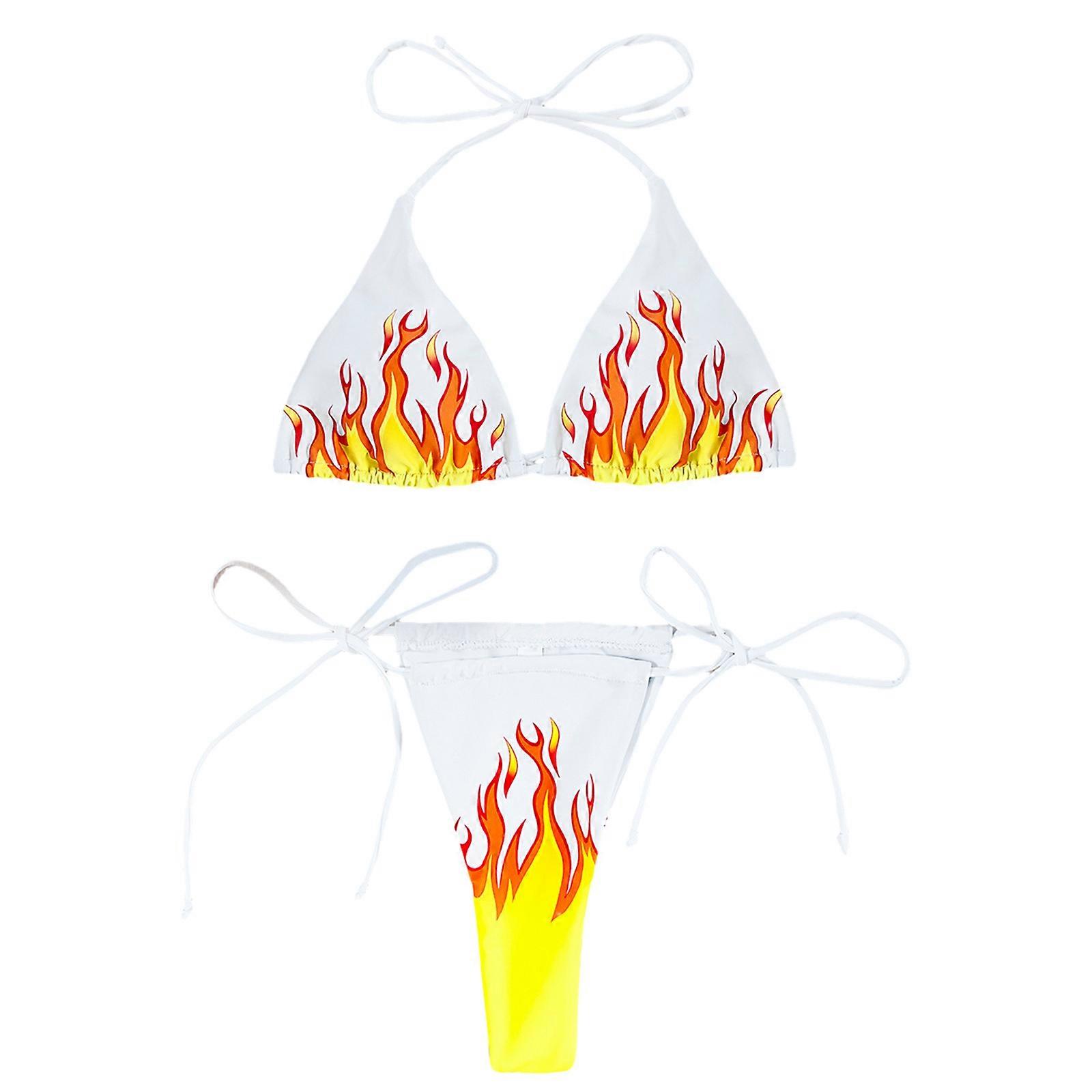 Two Pieces Bikinis Set for Woman String Bathing Suit Triangle Bra Top with Thong Bottom Sexy Triangle Bikinis Swimsuit White XL