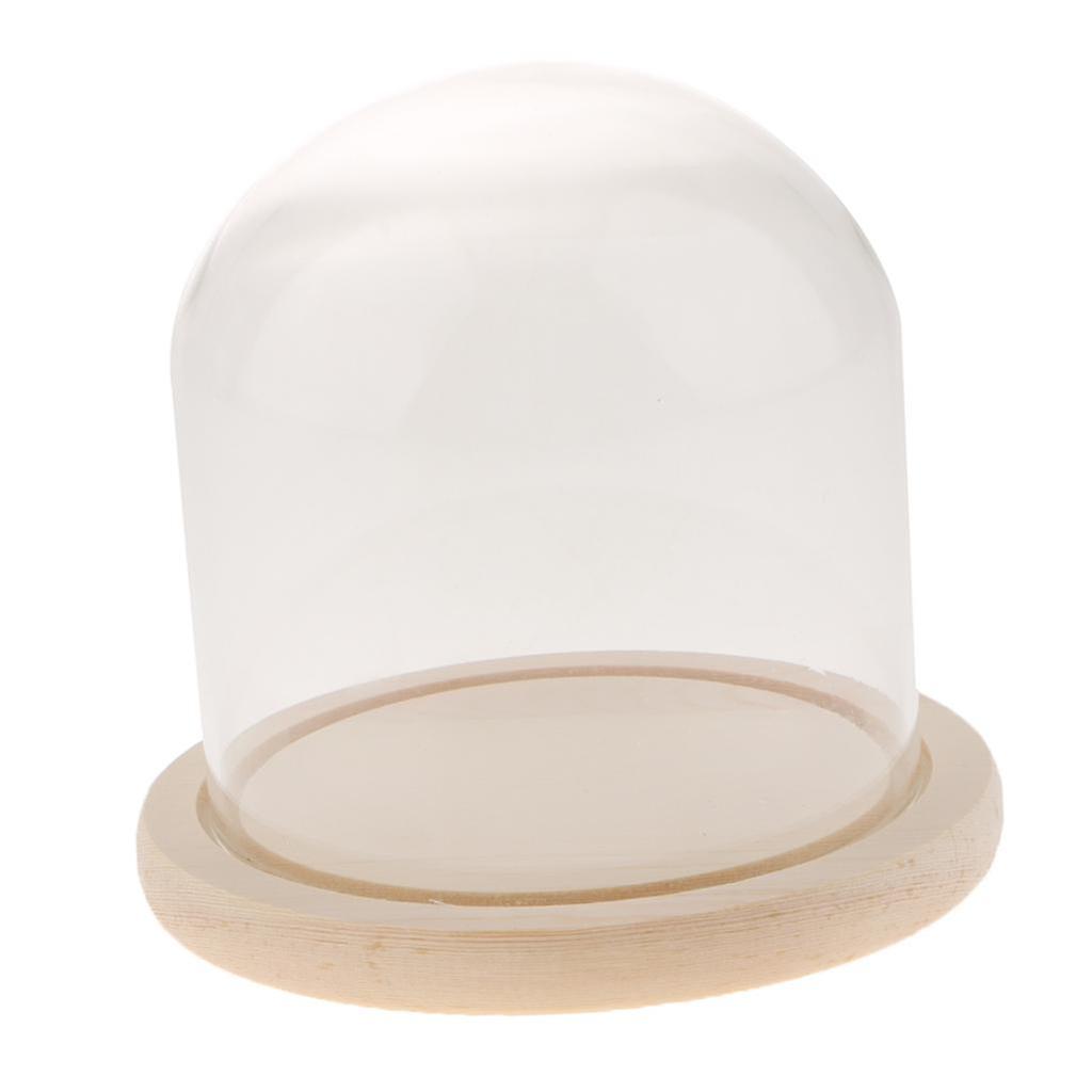 Wooden Glass Dome with Wooden Base Cloche Glass Cover Flower Vase Holder D