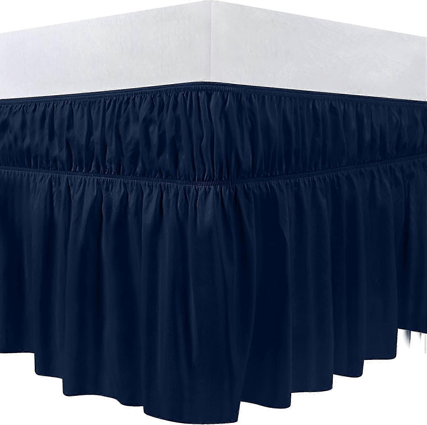 Double Elastic Bed Skirt Ruffle - Microfiber Bed Skirt Adjustable Twin Bed Navy