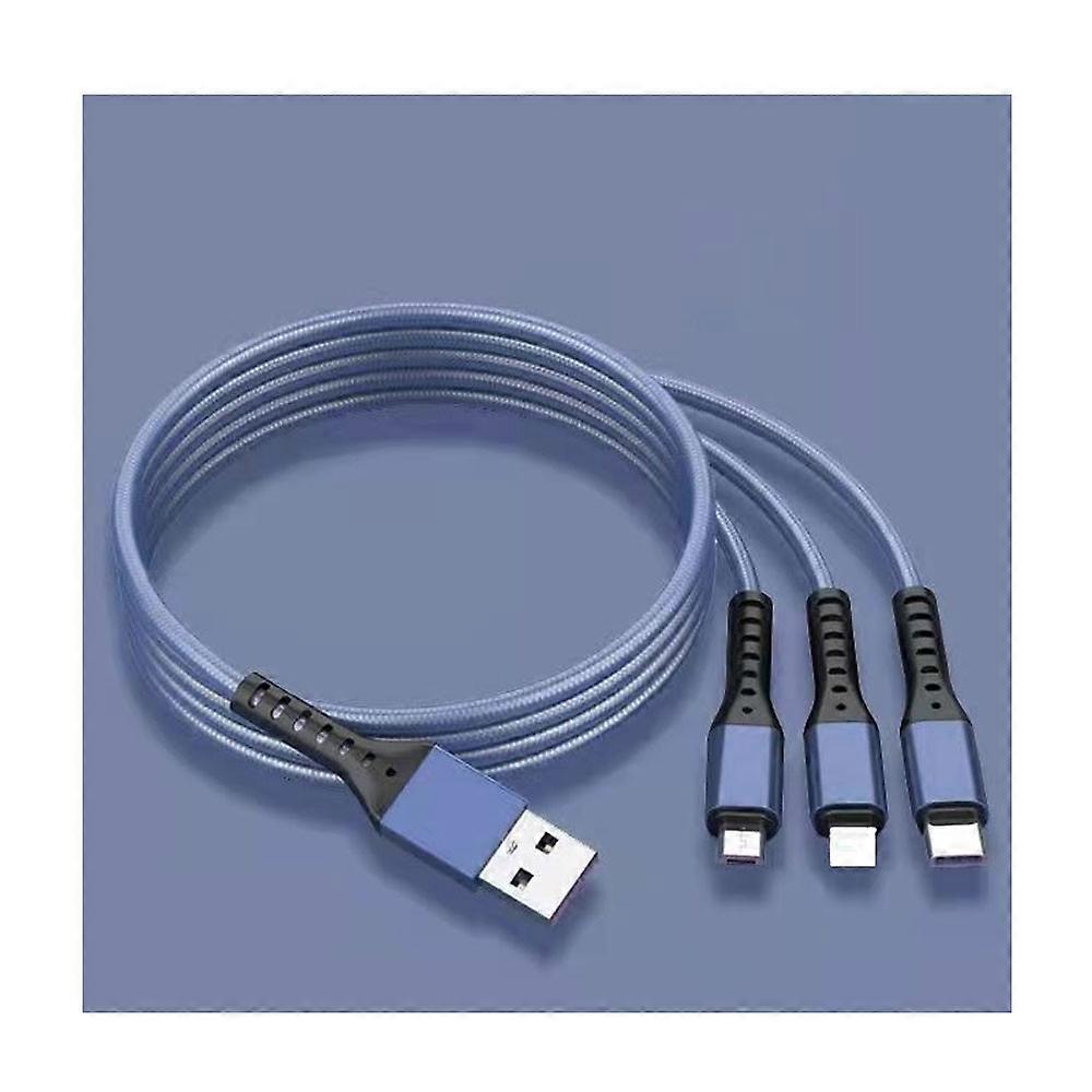 Dww-Un cble de donnes un trois tress en nylon bleu multi-tte 2A cble de chargement de tlphone portable trois-en-un charge rapide, adapt pour Apple +