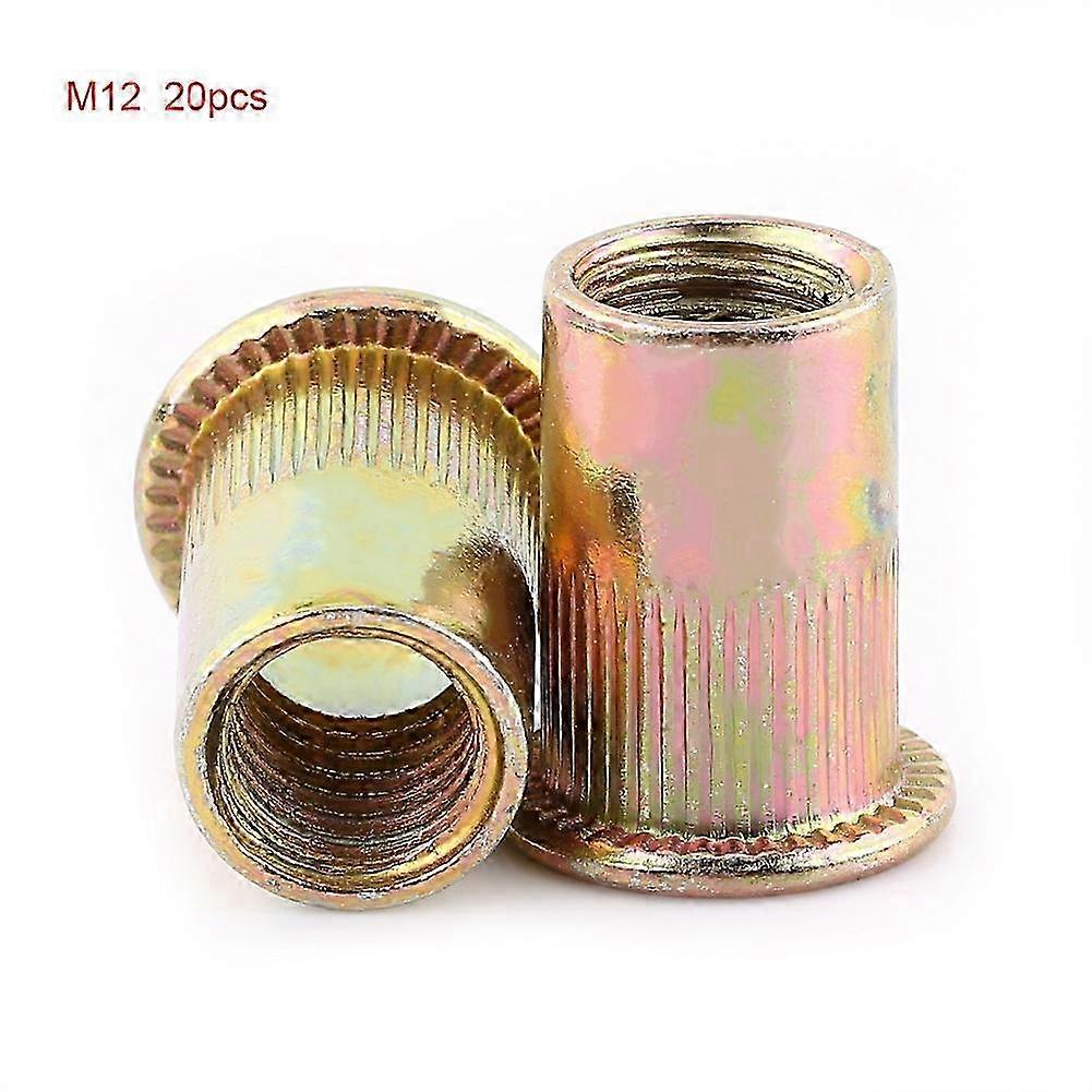M3-M12 Carbon Steel Flat Threaded Rivet Nut Flange Rivnut Nutsert Fastener(M12x20pcs)