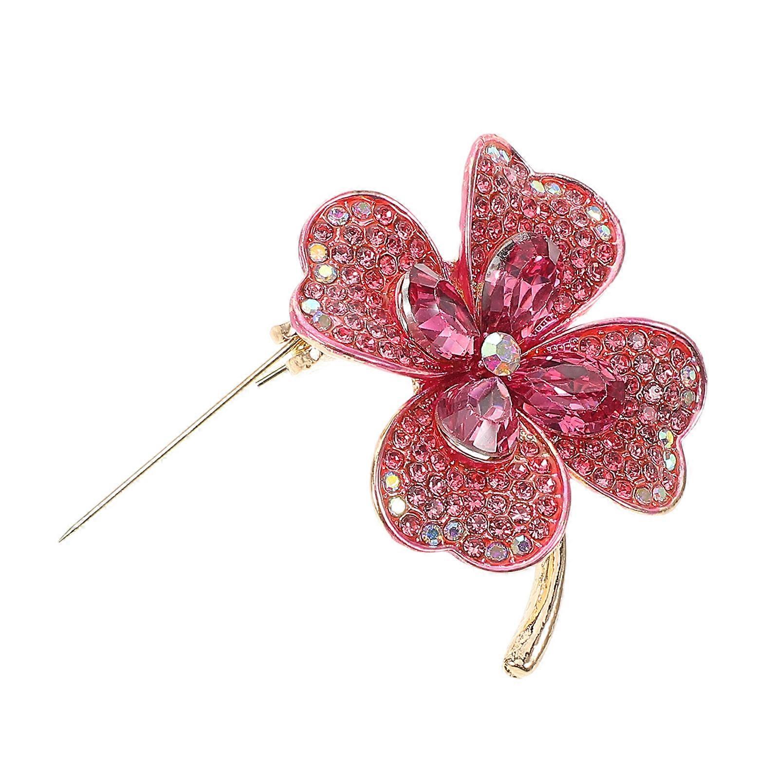 Elegant Crystal Shamrock Lapel Pin Clover Brooch Women Accessories Vintage Decor Pink Color 1Pcs