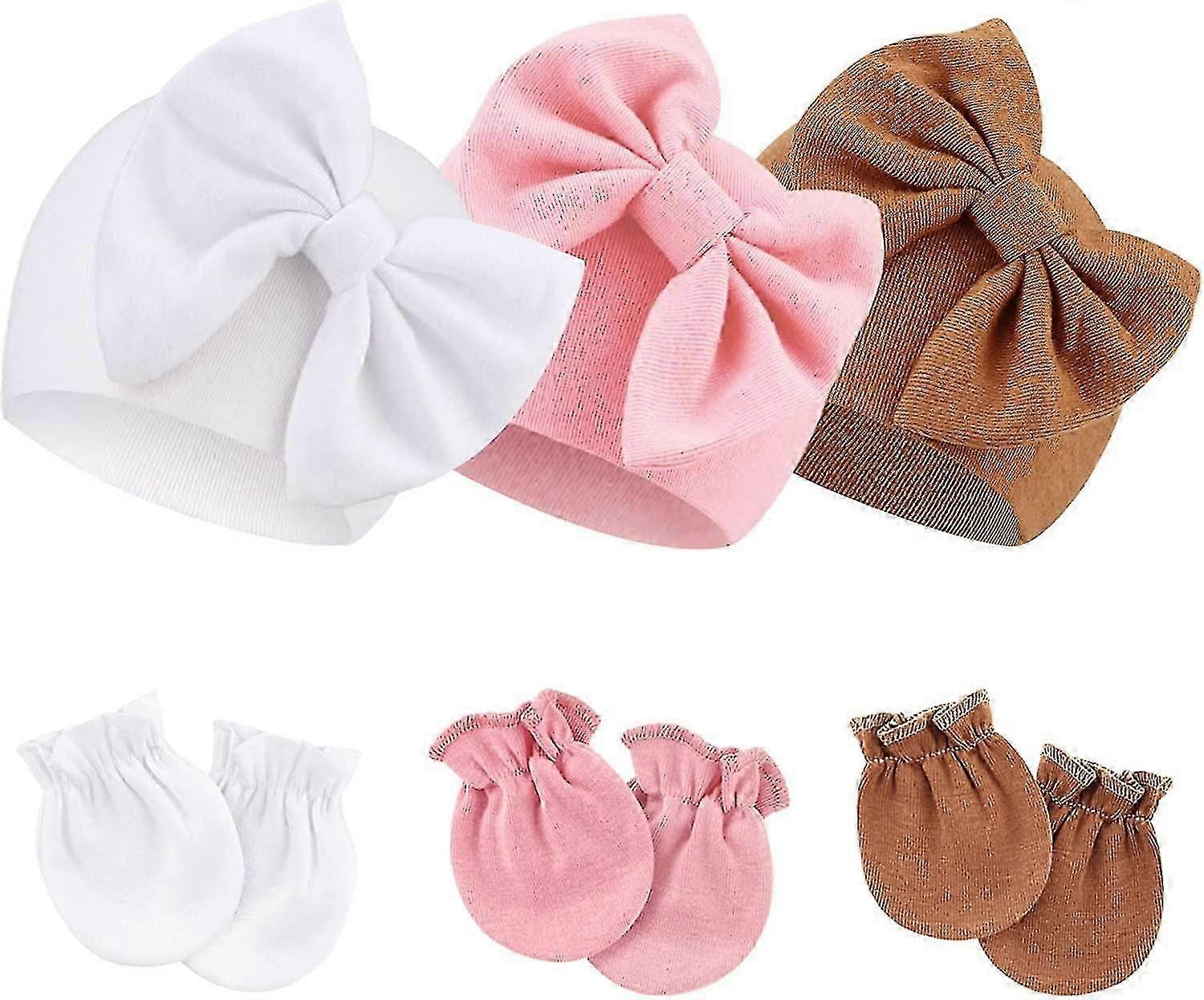 Newborn hat and glove combo set, 6-piece, anti-scratch and suitable for all seasons