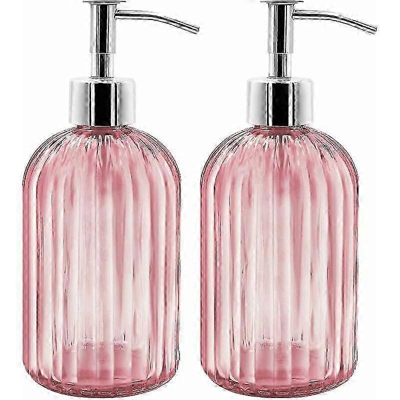 Set of 2 Glass Soap Dispensers, 400ML Refillable Lotion Pump Bottles--