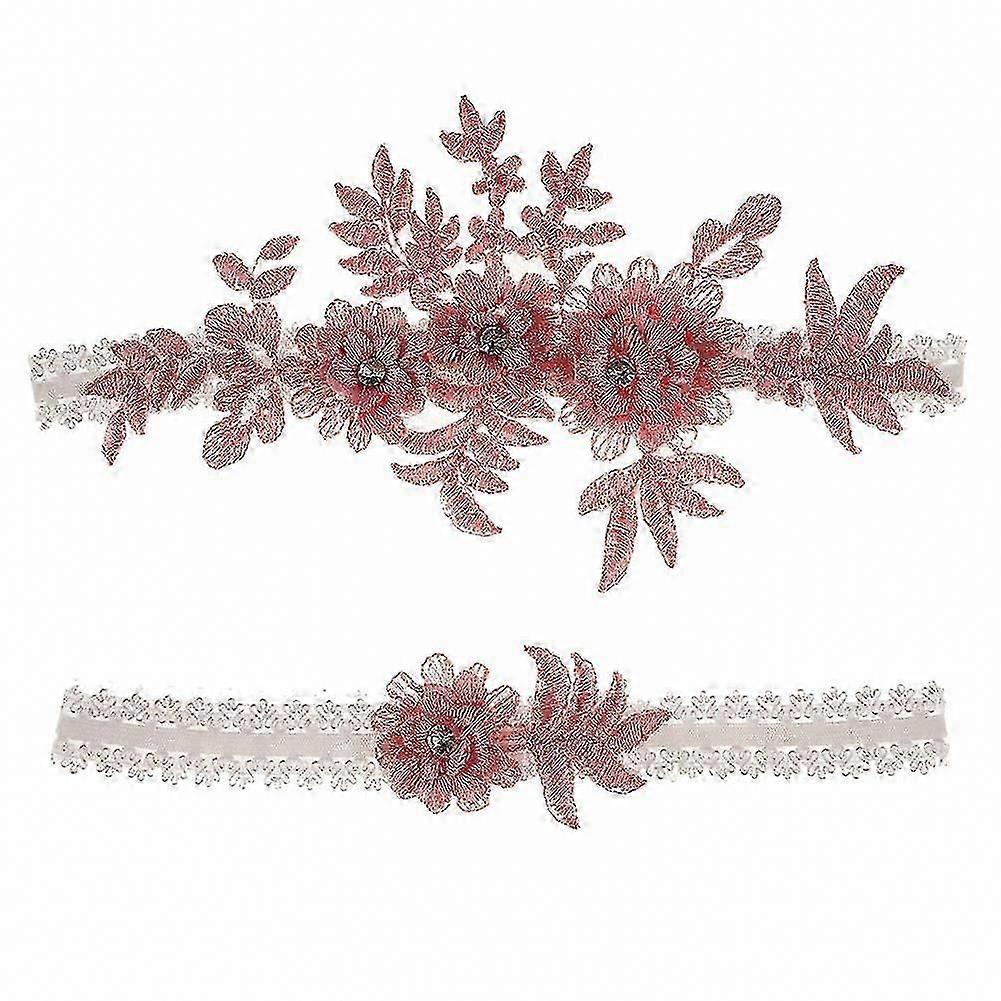 2 Pcs Wedding Garters Set Lace Bridal Garter Stretchy Floral Garter For Bride Blue And Whi