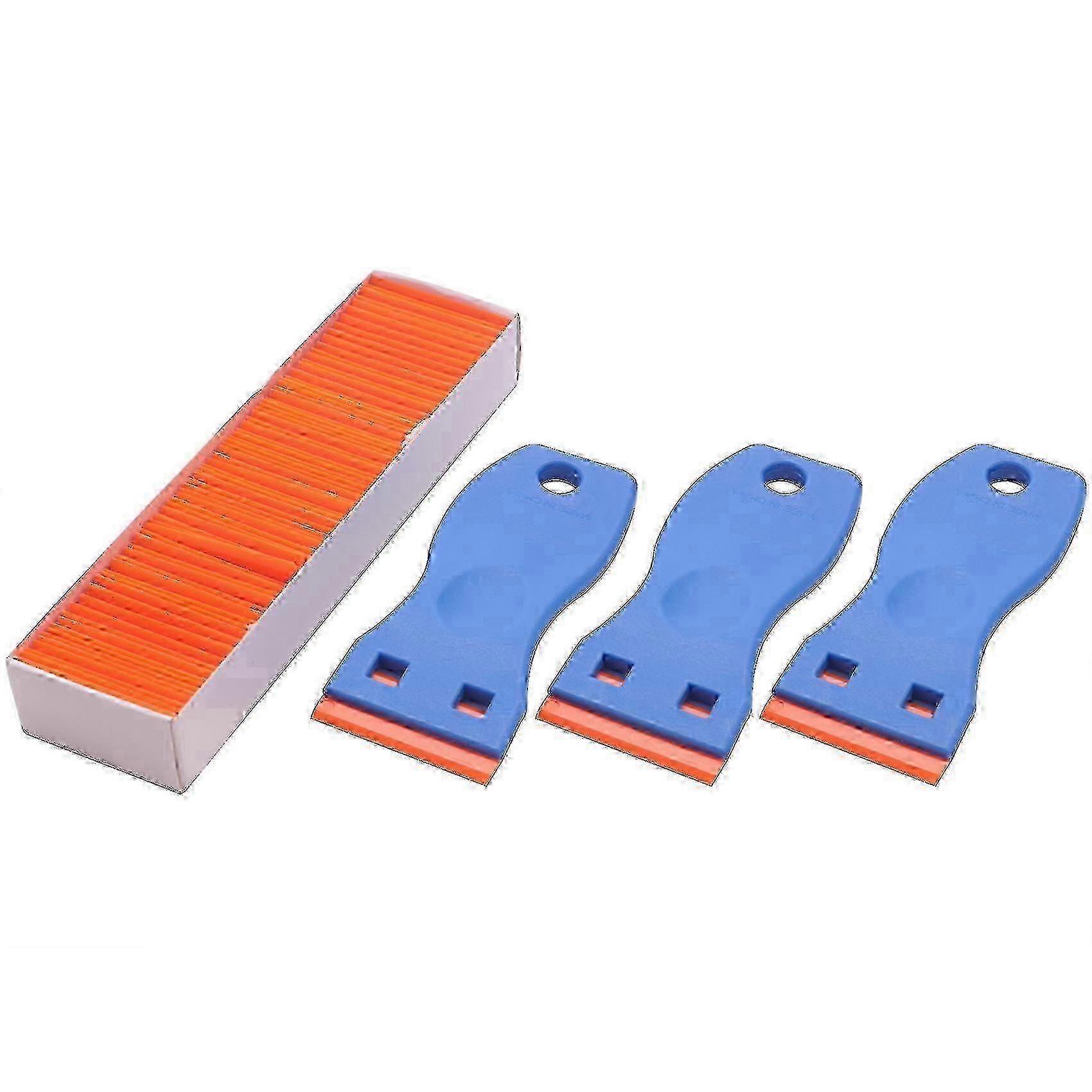 3-Piece Plastic Blade Scraper Set with 100 x 1.5 Inch Double-Sided Razors for Automotive Use