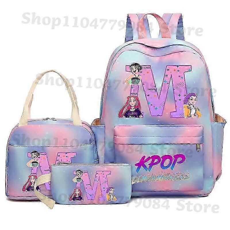 3pcs K-pop Demon Hunters School Bag Pencil Case Lunch Bag Set for Students Cartoon Letter Printed Backpack