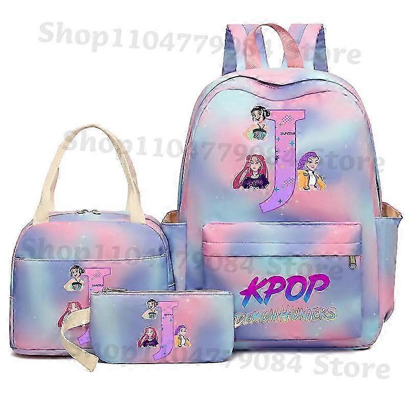 3pcs K-pop Demon Hunters School Bag Pencil Case Lunch Bag Set for Students Cartoon Letter Printed Backpack