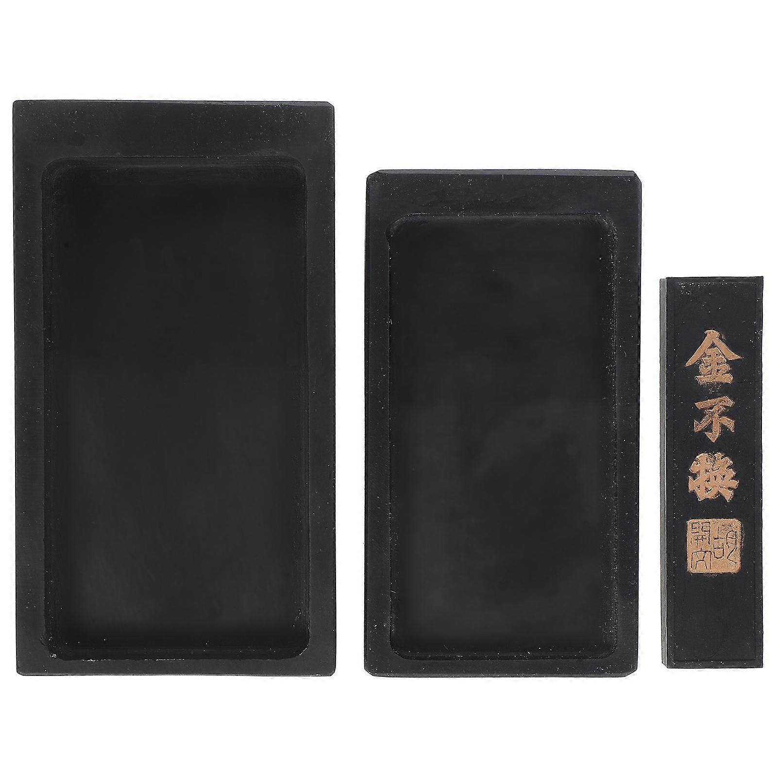 Crafted with precision, this traditional Chinese calligraphy set features an elegant inkslab and ink stick, designed for grinding ink to achieve the suitable consistency. Its smooth surface ensures effortless ink preparation, making it ideal for creating intricate calligraphy strokes and expressive brush paintings. Features -Color:Assorted Color -Material:Stone, graphite -Size:9.30X2.30X1.00cm/3.65X0.90X0.39in -Size:12.00X6.50X1.50cm/4.72X2.55X0.59in -Size:13.40X7.50X2.00cm/5.27X2.95X0.79in -Natural material chinese calligraphy set: made from natural stone and graphite, this inkslab and ink stick set offers rich color to enhance the artistic expression of your work -Classic design chinese calligraphy set: the of this calligraphy set preserves centuriesold traditions, providing an authentic experience for your calligraphy creations -Portable and convenient: easy to carry and store, this set is designed for convenience, making it suitable for use at home, school, or on the go -Stable inkslab: the sturdy inkslab ensures a stable surface for grinding ink sticks, making it suitable for beginners and professional calligraphers alike -Versatile use chinese calligraphy set: ideal for calligraphy and painting, this set meets the needs of both amateur and professional artists, providing versatility in creative projects Package list: 2 x 5-inch inkstone 2 x 4-inch inkstone 2 stick