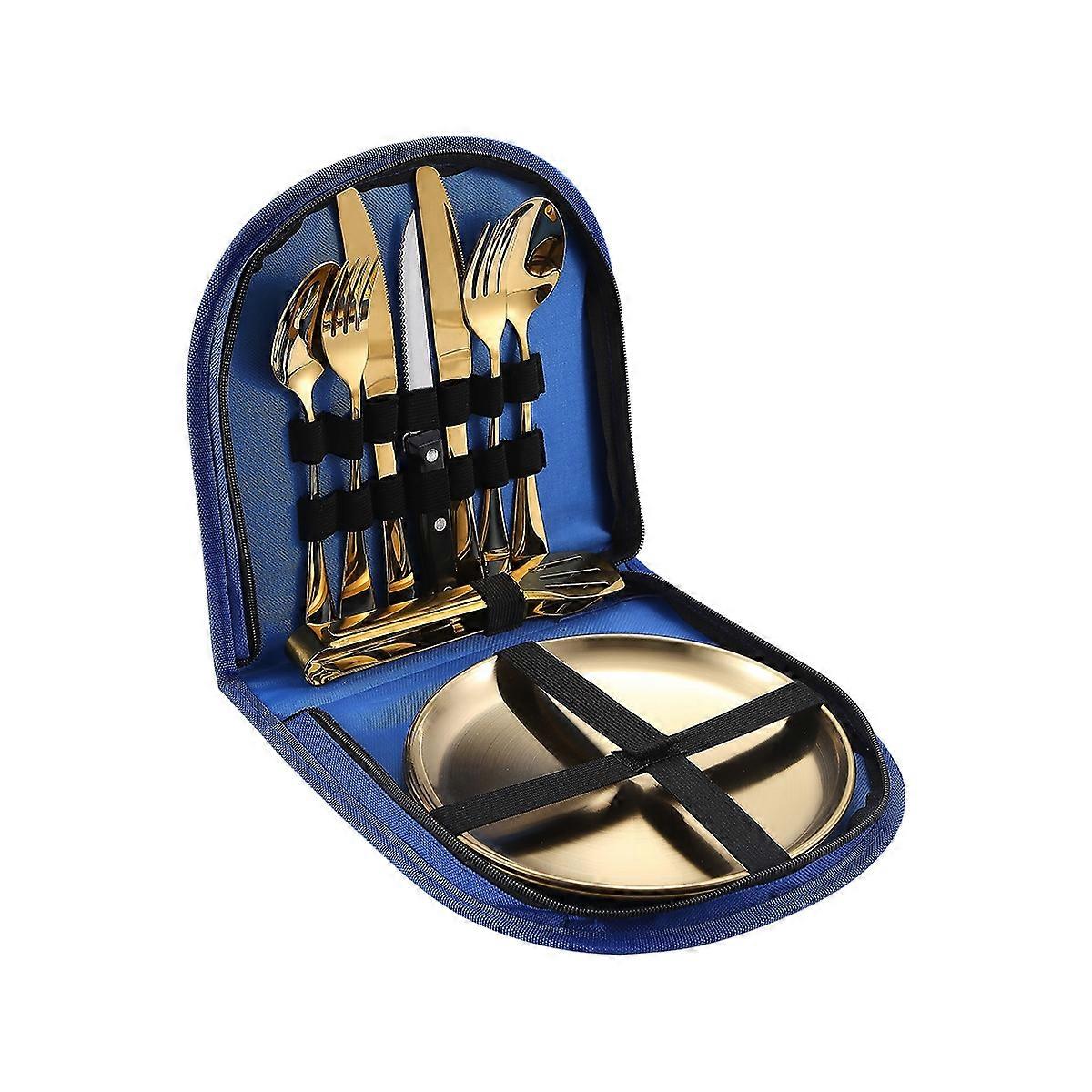Stainless Ste Portable Cutlery Set ,Color: Blue Gold