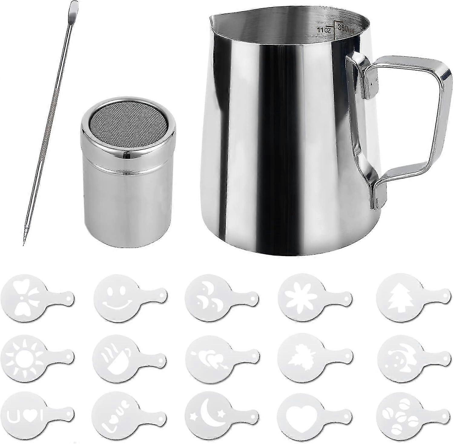 Stainless Steel Milk Frothing Pitcher Set with Latte Art Pen - 350ml (12oz) Frothing Pitcher for Cof