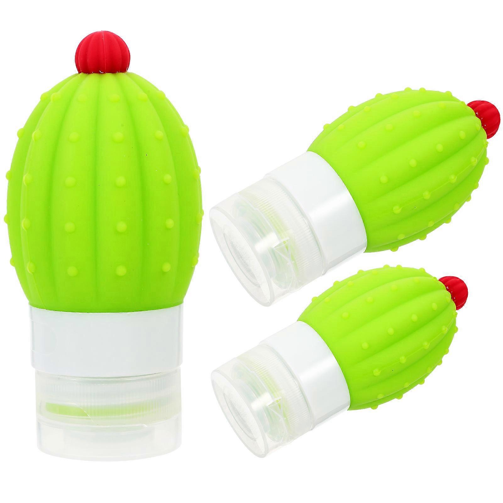 Travel Friendly Toiletry Container Set 3Pcs Cactus Shaped Lightweight Silicone Light Green 9.6X4.7X4.7Cm Airtight Design