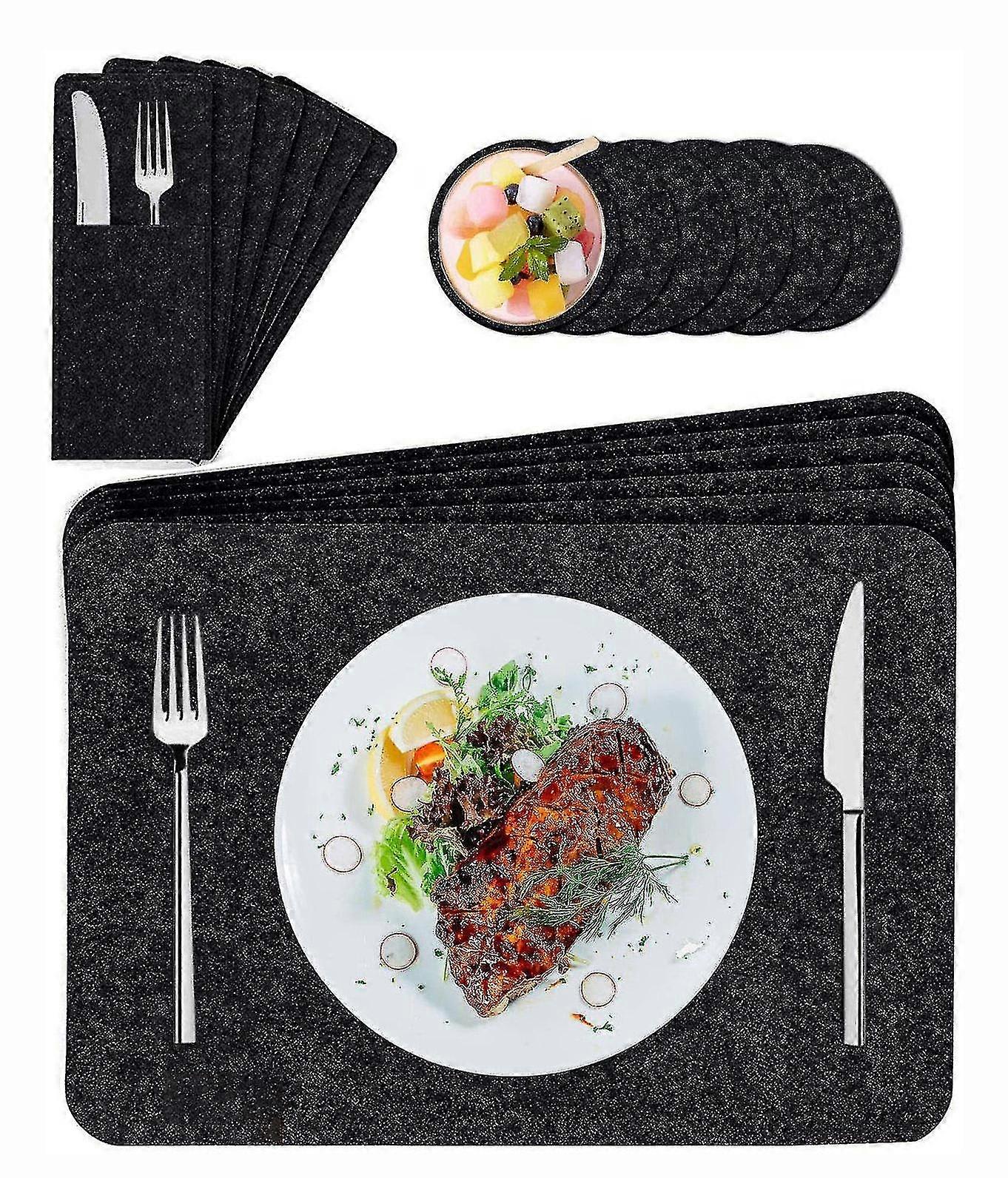 Washable Placemat Set - 6 Washable Placemats + 6 Glass Coasters + 6 Cutlery Bags