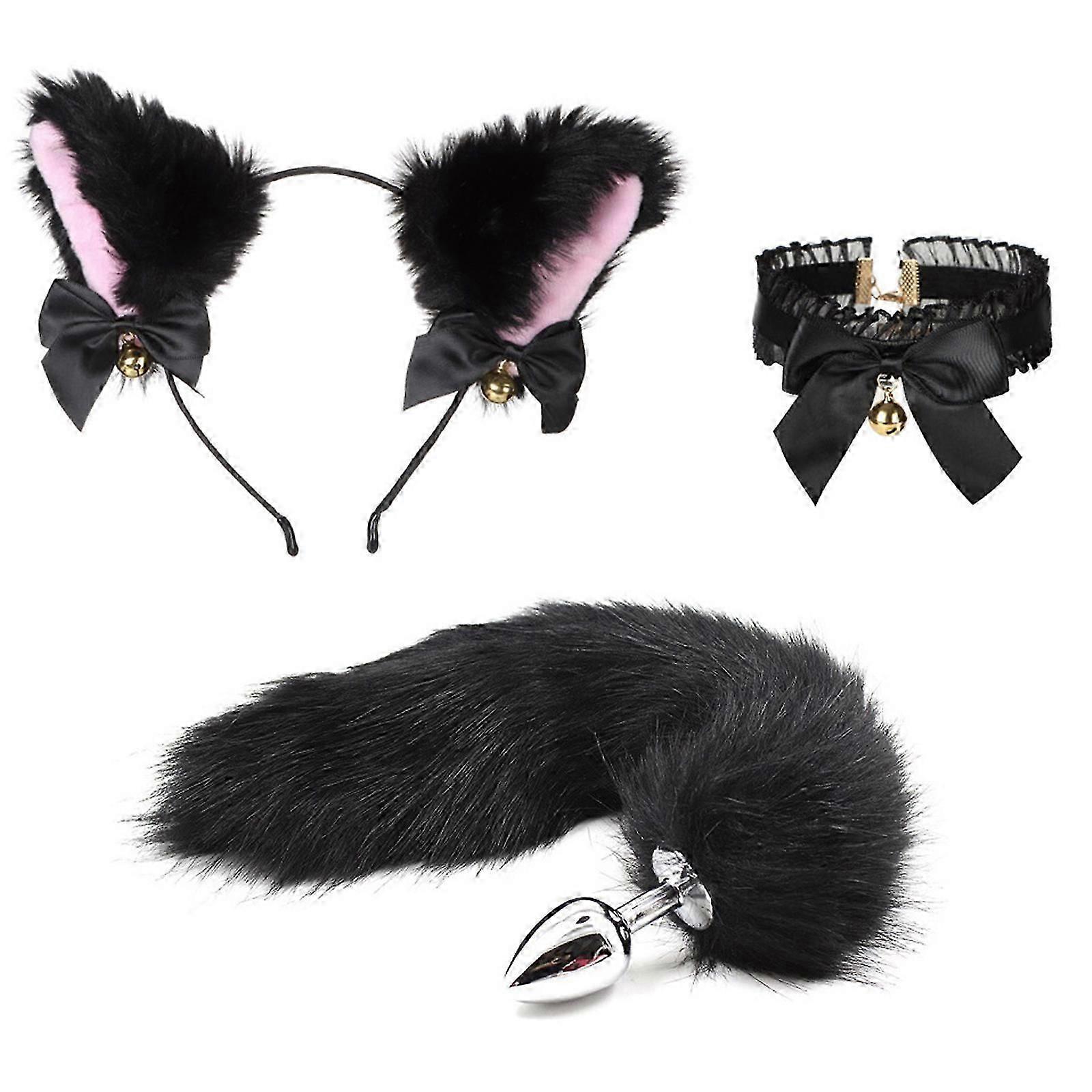 Handmade cat ear heaand + bell necklace + tail kit for theme party hk
