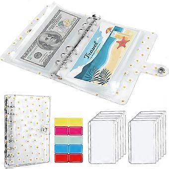 12 pcs ensemble de classeur budget, ensemble de classeur à anneaux A6 avec classeur budgétaire en PVC, 10 enveloppes d’argent transparentes et autocollants d’étiquette pour voyage, agenda, planificateur de budget
