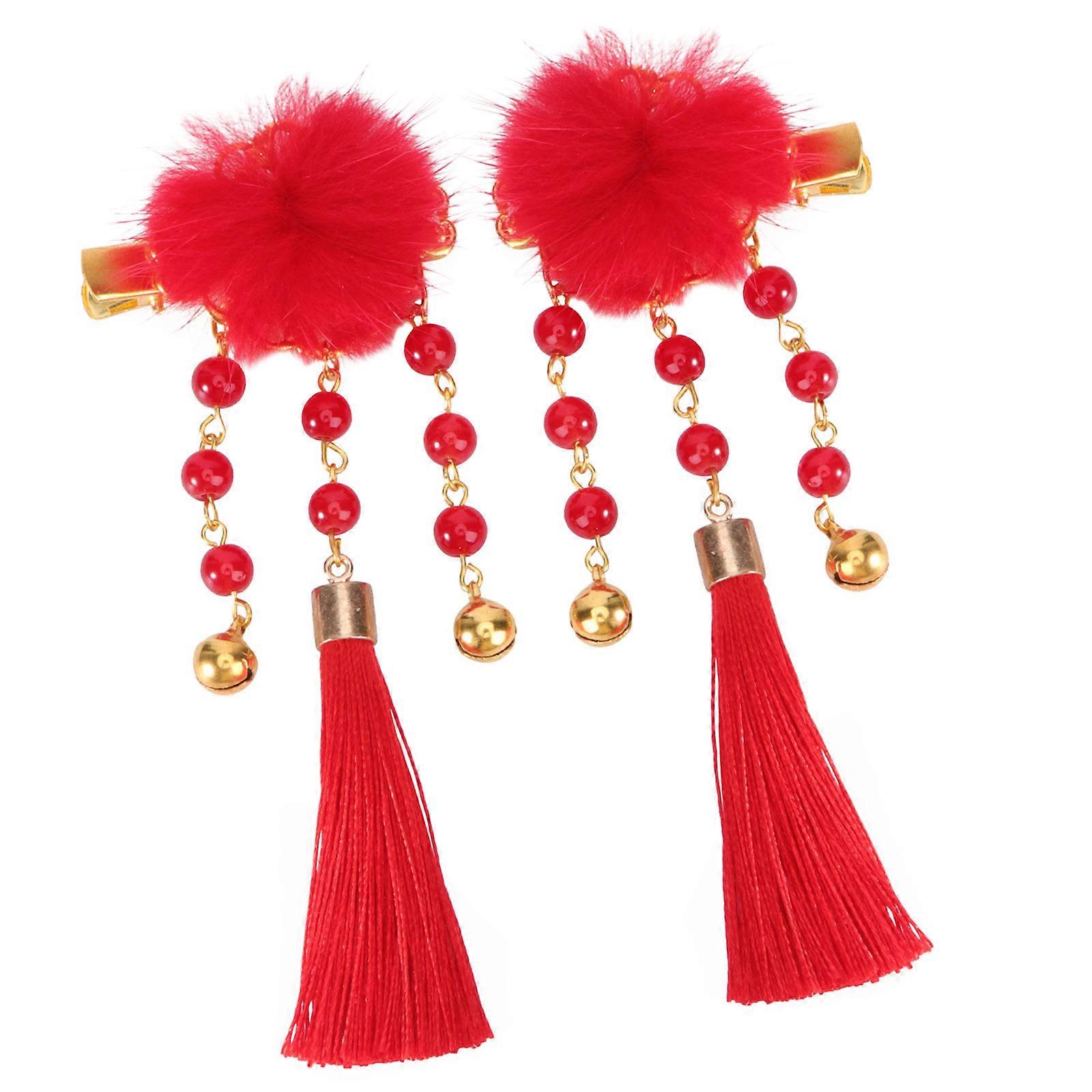 Red Butterfly Bow Hairpin for Decor 1Pair Tassel Ribbon Hairclips