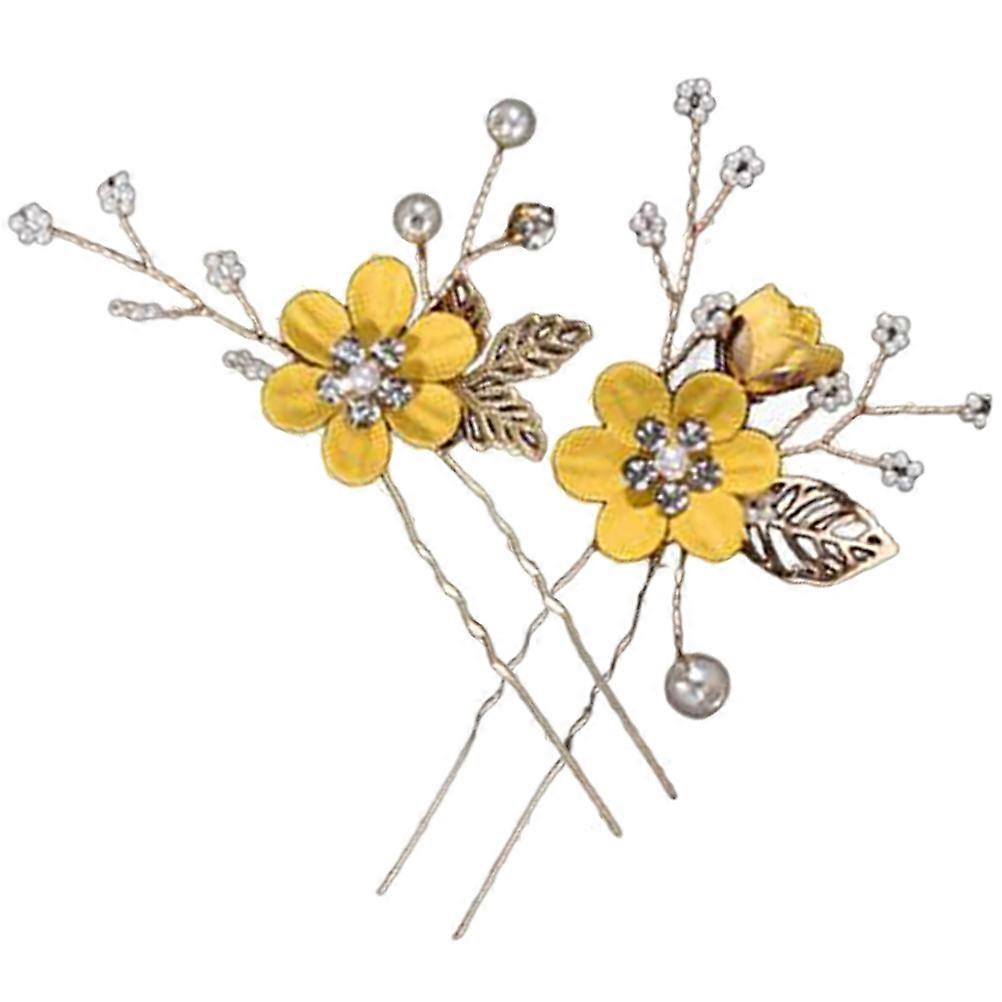 Yellow Wedding Flower Hairpin for Bride with 4Pcs Cloth Flower Hairpins