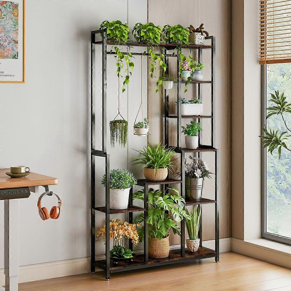 Extra Tall 7 Tiers Large Plant Shelf Industrial Wood Plant Corner Shelf