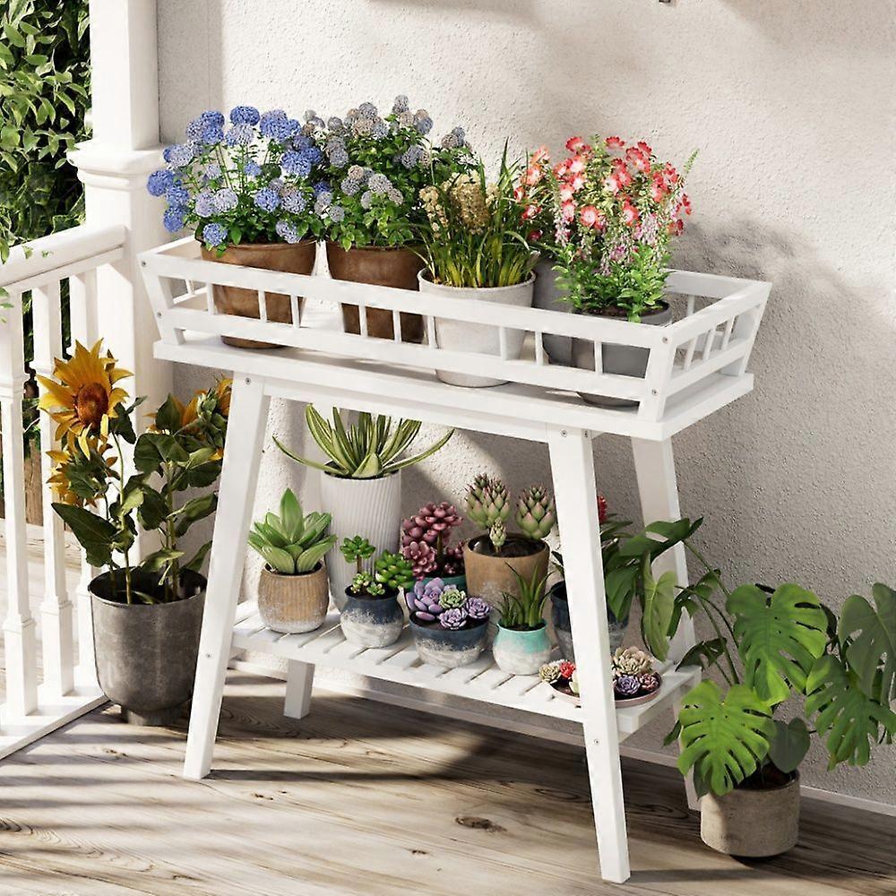 2 Tier Wood Plant Stand Potted Planter Shelf for Patio Balcony