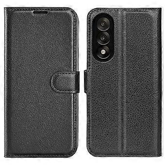 Étui à rabat horizontal en cuir à texture litchi avec support