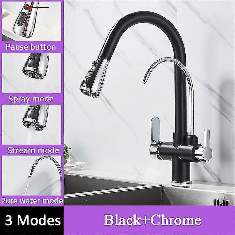 Exquisite Senlesen Golden Kitchen Faucet For Purified Water Brass Deck Mounted Dual Handle Pull Out Sink Faucet Two Swivel Spout Mixer Tap