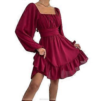 Femme Col Carré Cravate Taille Dos Manches Volants Mini