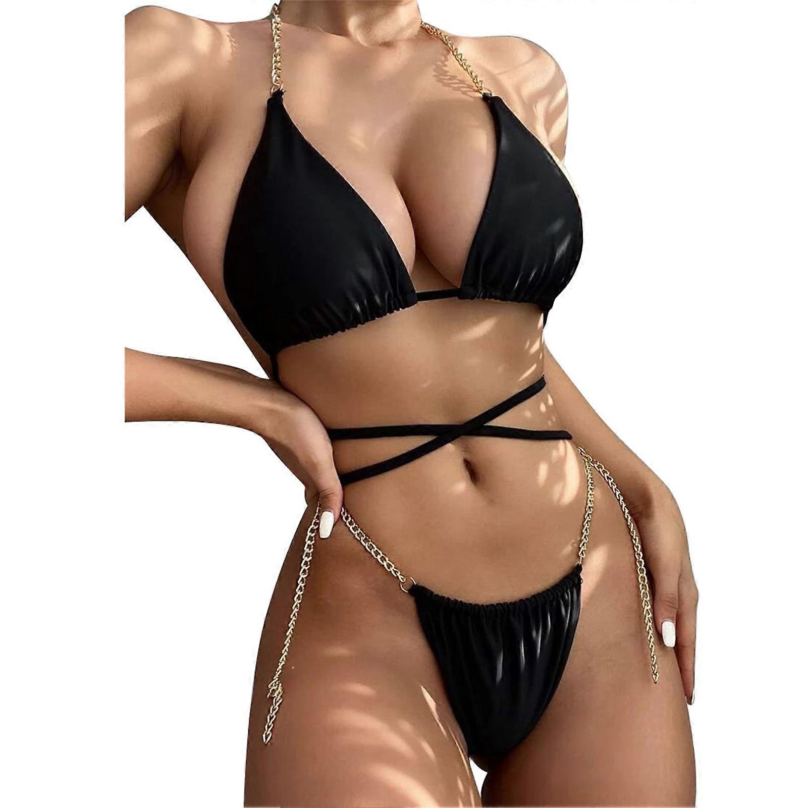 Women Bikini Set Fashionable Backless Chain Strap Design Split Swimwear Two Piece Swimsuit