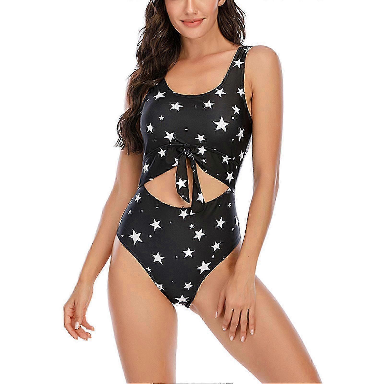 Women Round Neck Swimsuit One Piece Swimsuit Cutout Front Swimsuit Tie Knot Bathing Suit
