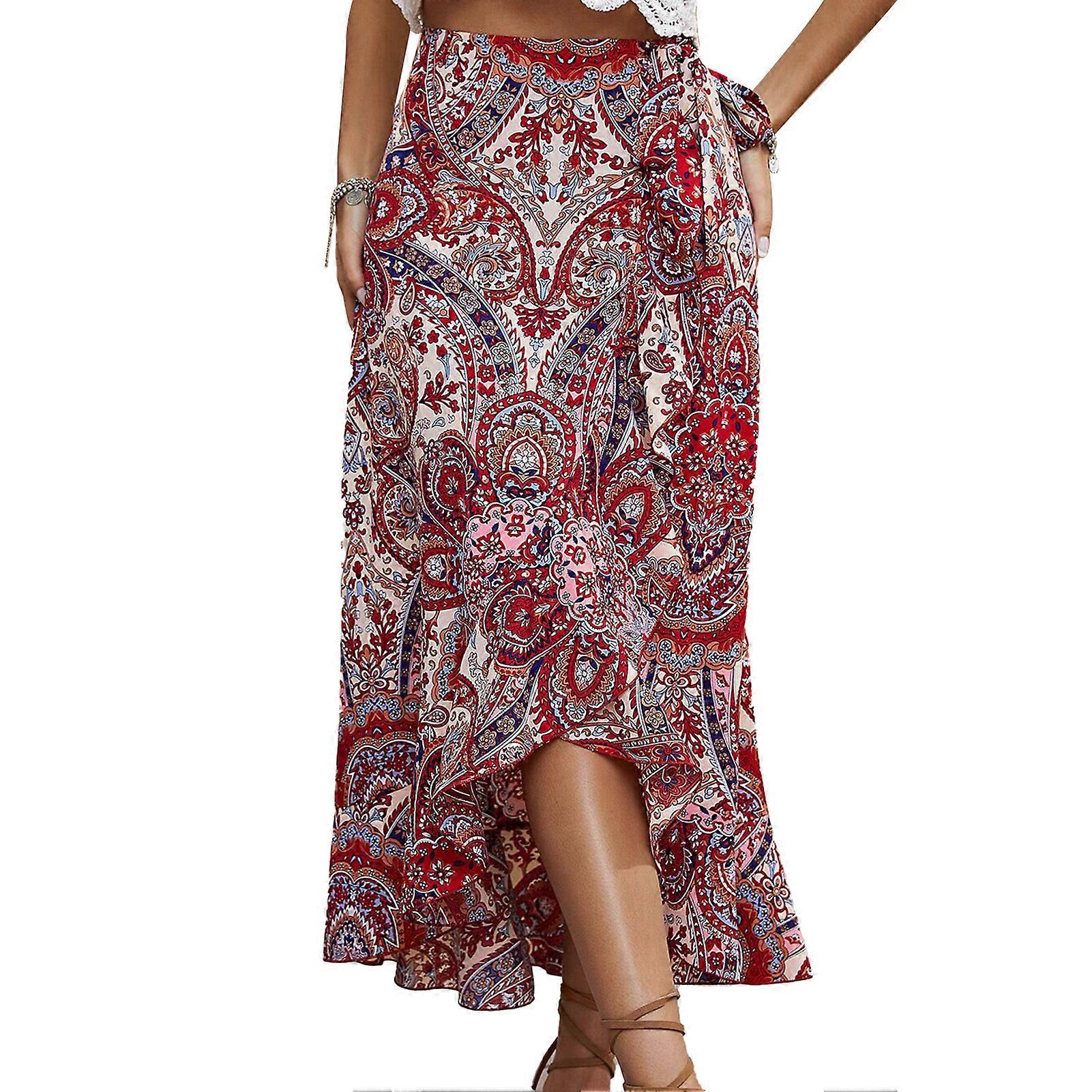 Women Print Ruffle Hem Skirt Print High Waist Skirt Midi Long Skirt Trendy Casual Summer