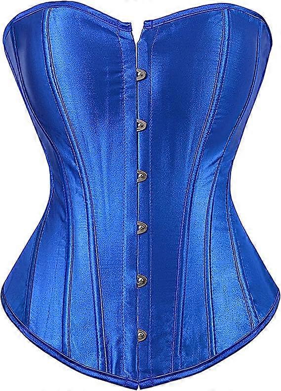 Women's Bridal Lingerie Lace up Satin Boned Corset + G-string(1set-Blue)