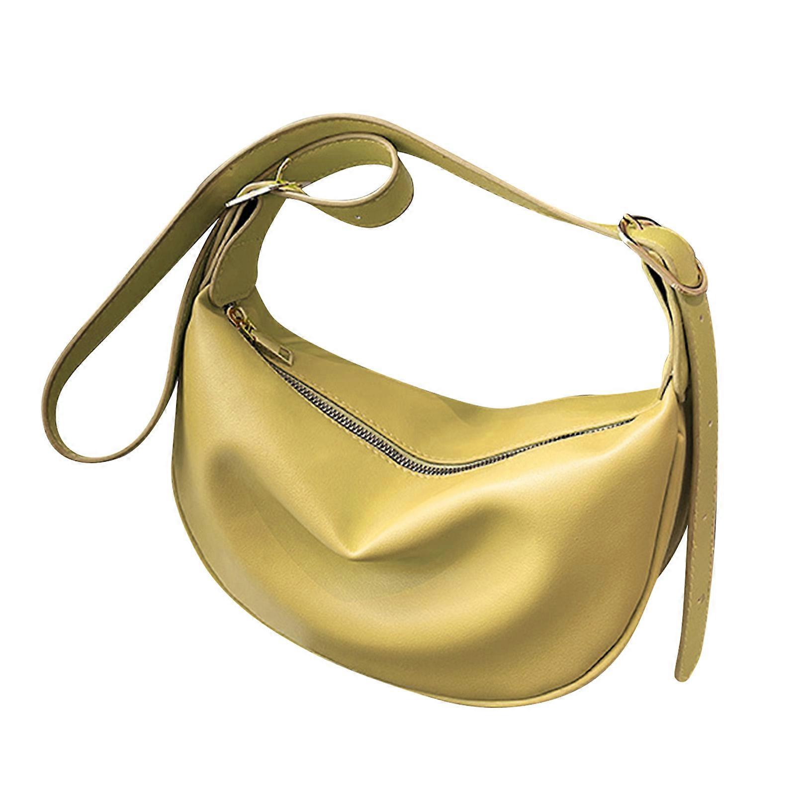 Women Shoulder Bag Purse Pu Casual Fashion Simple Versatile Adjustable Length With Zipper Yellow Free Size