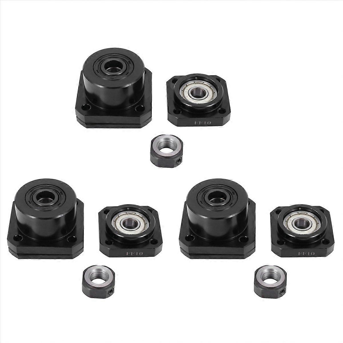 Support unit such as FK type bearing into the proper amount of lithium soap grease, with special sealing gasket for seal, can direct installation, use for a long time. The blackening process, high precision support. High rigidity, high precision and stable performance of rotation. Mounting method of ball screw support: (1) fixed to the threaded rod on the fixed side. (2) the fixed side inserted, tightening the lock nut, fixed with the cushion block and the inner six angle bolts. (3) the supporting side bearing is fixed on the threaded rod shaft with a stop ring and is loaded into the bearing block. Product name: FK+FF Ball Screw End Support Model: FK10/FF10 Material: Carbon steel colour: black Package Contents: 3 x FK Bearing block 3 x FF Bearing block Only the above package content, other products are not included. Note: Light reflection and different displays may cause the color of the item in the picture a little different from the real thing. The measurement allowed error is +/- 1-3cm.