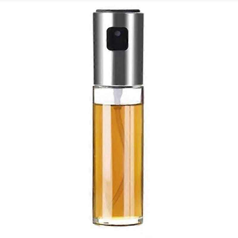 Stainless steel and glass oil/vinegar spray bottle, 100 ml, for easy dispensing.