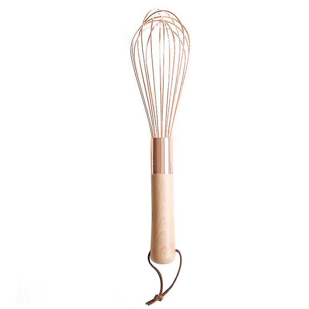 Rose Gold Stainless Steel Whisk with Wooden Handle for Mixing and Frothing