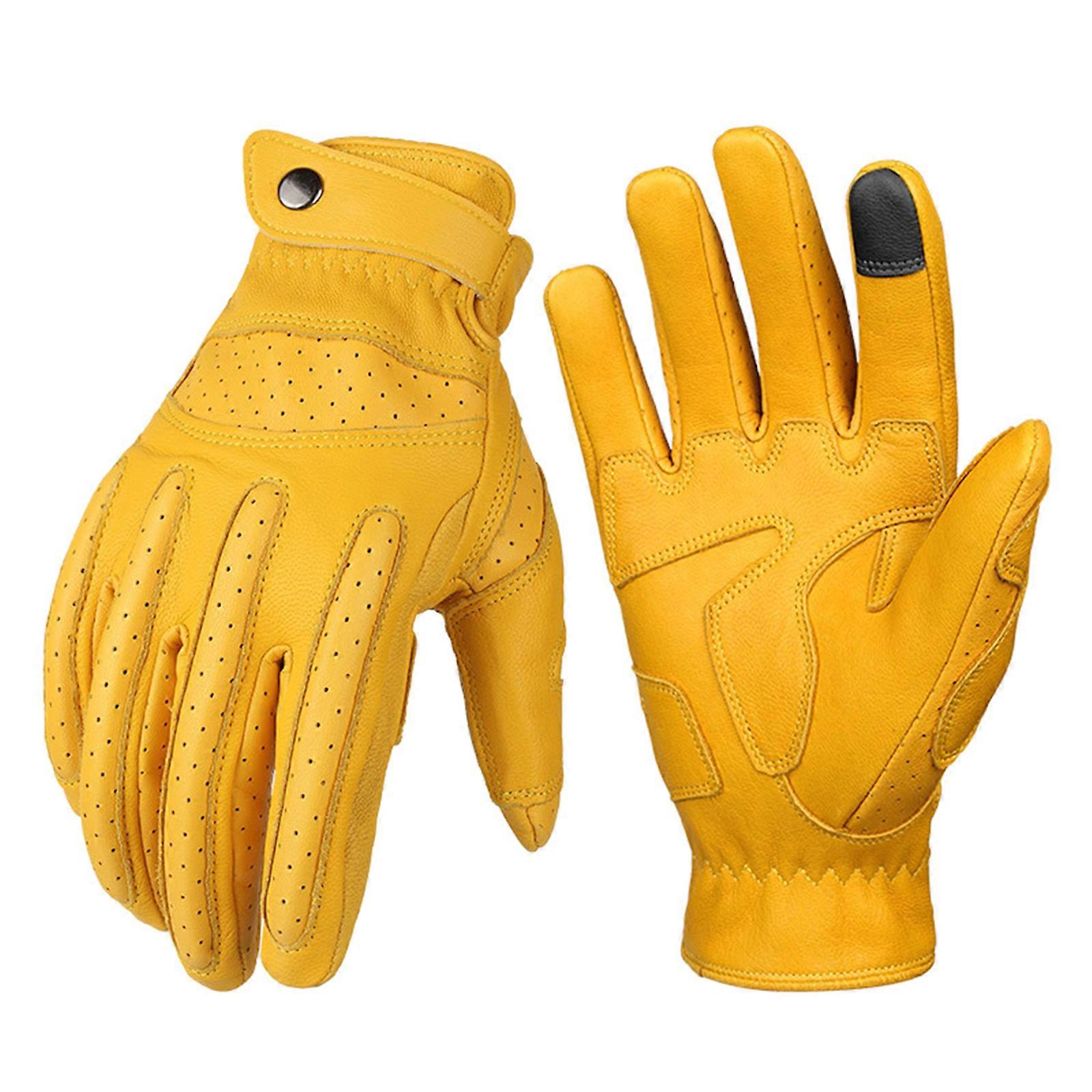 Winter PU Leather Gloves for Men, Warm Touchscreen Texting Gloves,Driving Gloves for Outdoor Use XL Yellow